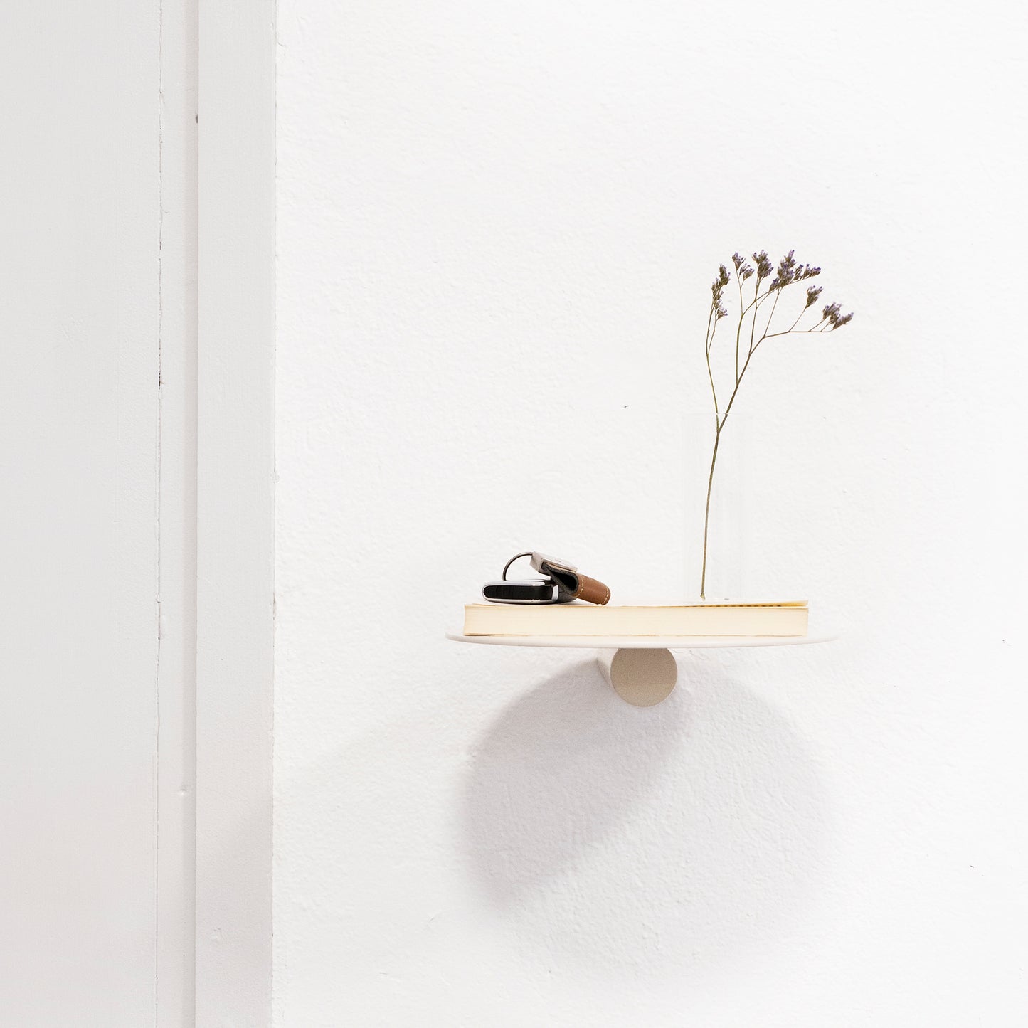 The floating shelf – en nätt svävande vägghylla. Passar lika bra som litet sängbord, sidobord eller som liten piedestal för vackra ting. Det dolda väggfästet gör att hyllan tycks sväva på väggen. Kombinera gärna flera hyllor på samma vägg.